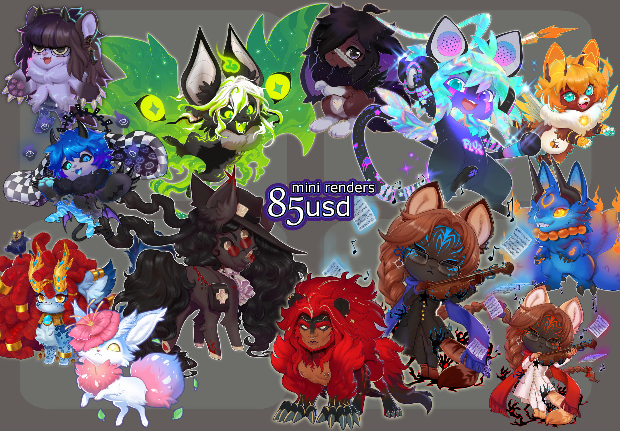 Great for Stickers, Charms, any CS/ARPG masterlist or quest art. Chibiesque proportions and limited tertiary forms. Can be quad or bipedal and have additional individual background props. Small to moderate design services available at this level. Masterlist corrections are always included free with this item.
